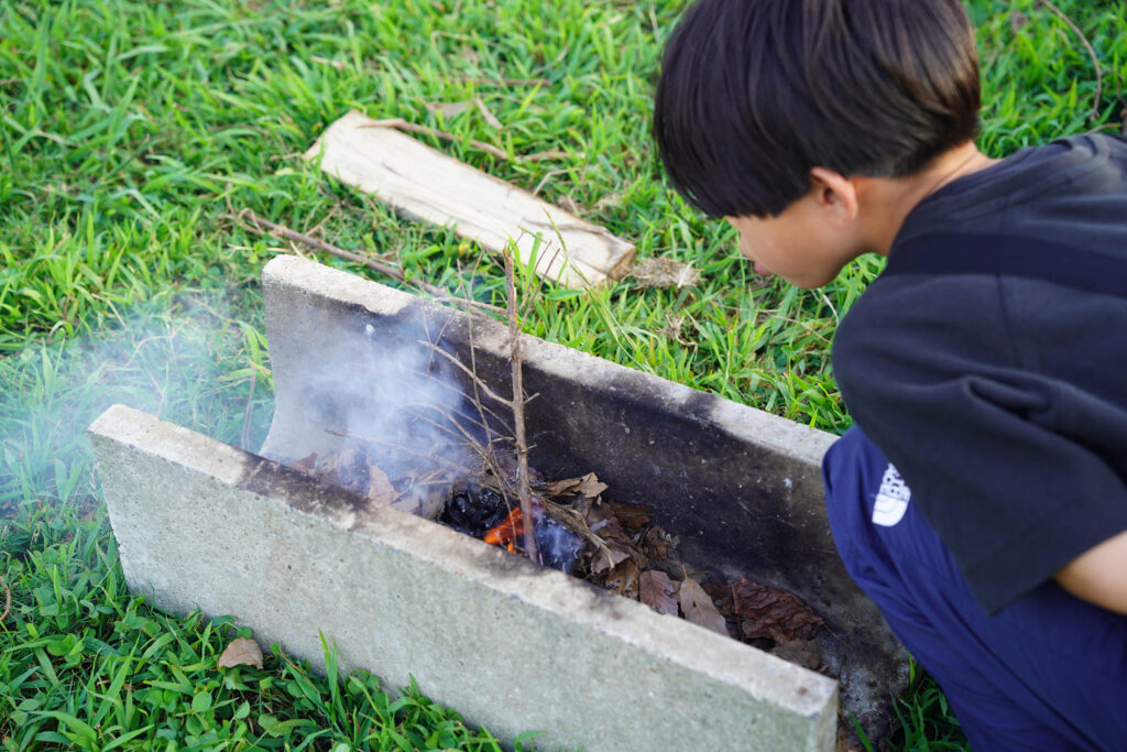 参加された方にお話を伺うと、はじめてマッチを触るお子さんもいたりして、マッチがひとつの体験になっていることを実感! 火がおこせた後は自分でつけた火でフォーキング体験!