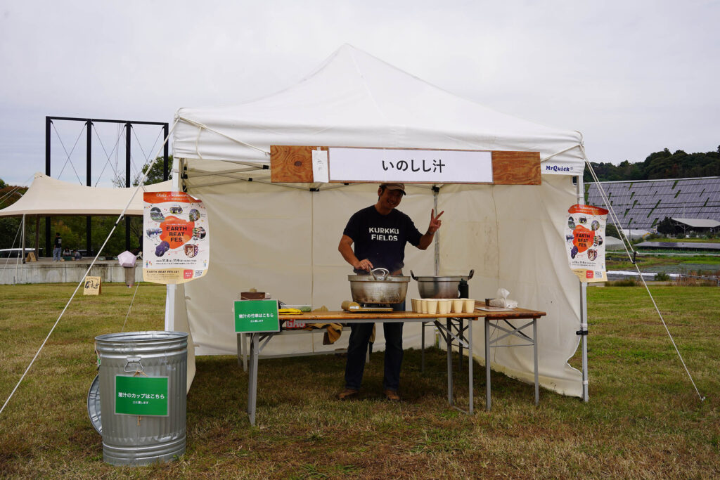 このスープは KURKKU FIELDS のお野菜と猪骨からたっぷり出汁をとっていて、飲めば体も心もポカポカになる味わいです。