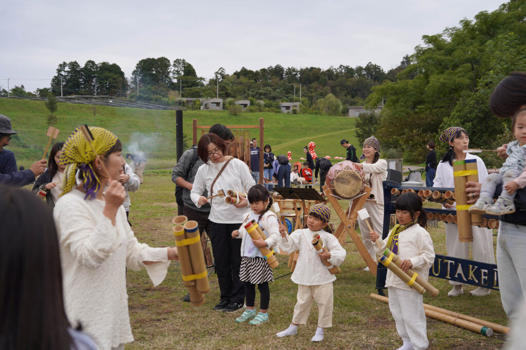 彩り豊かな音色は竹で作ったとは思えないほど。お客様もゲストで演奏。この日出会ったみんなでひとつの音楽を奏でました。