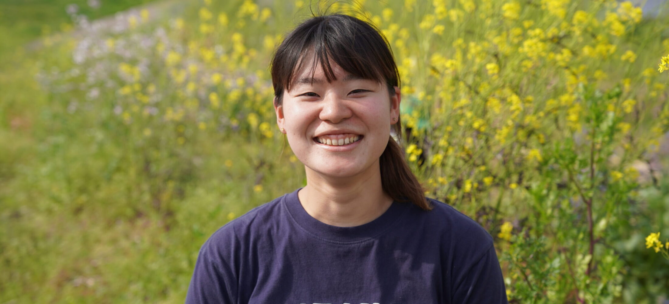 去年新卒で入社し、循環・教育の2つの部門に所属する西村さん。循環の現場では土や植物と向き合い、教育の現場では子どもたちと関わる。そんな毎日を通して、自然にも人の育ちにも、同じまなざしで向き合っている。素直さの奥に静かな熱を秘め、まっすぐ語られる言葉の端々から、彼女の誠実さが伝わってくる。