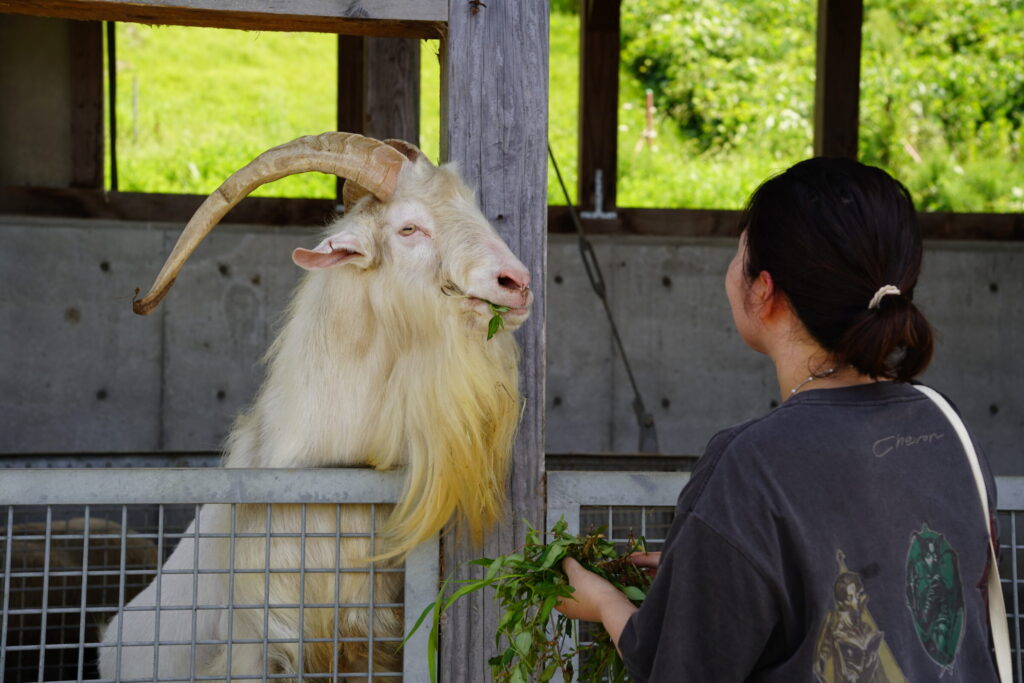 酪農場で飼育している牛やヤギ、ヒツジと触れ合うことができます。