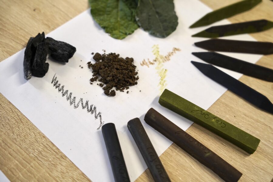 自然物や、いらなくなったクレヨンを使ってクレヨンを作ってみましょう。作ったクレヨンは、家に持ち帰って遊ぶことができます。