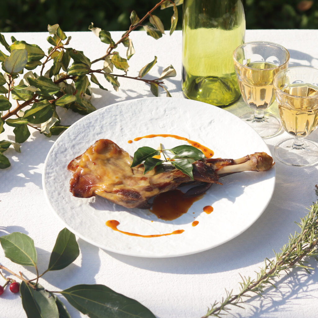 肉質の柔らかい小さな猪の個体の前脚をコンフィにしました。クリスマスの定番商品です。粒マスタードソースをお付けしてお渡ししています。